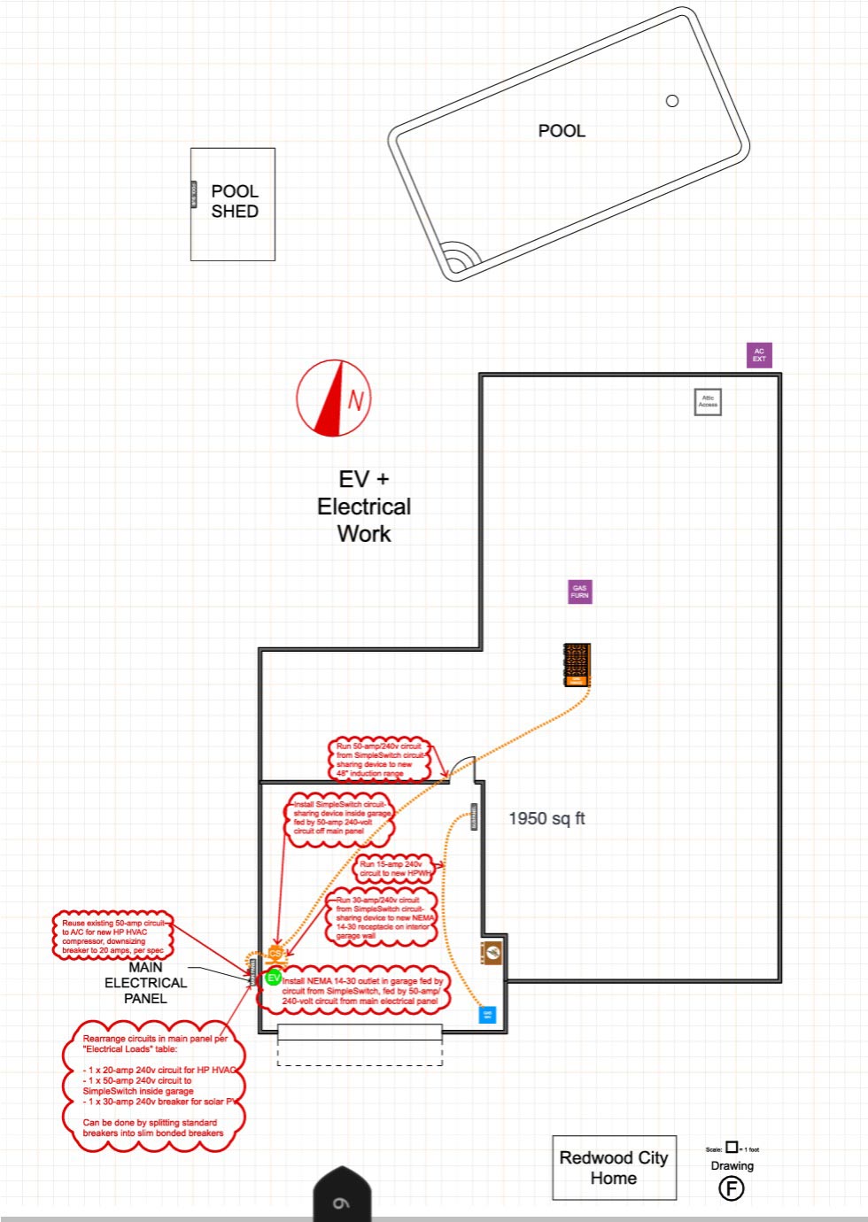 - Have your electrification plan ready so you know how much panel amperage you are saving for each future need (heating, water heating, 240 V charging, cooking, drying).